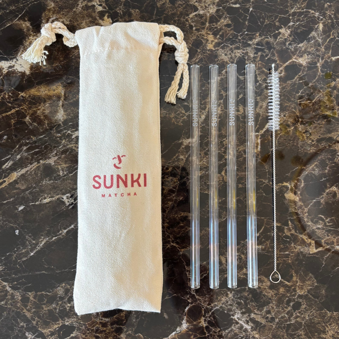 Livré avec pochon • Pailles en verre • ストロー • Gravé au logo •
